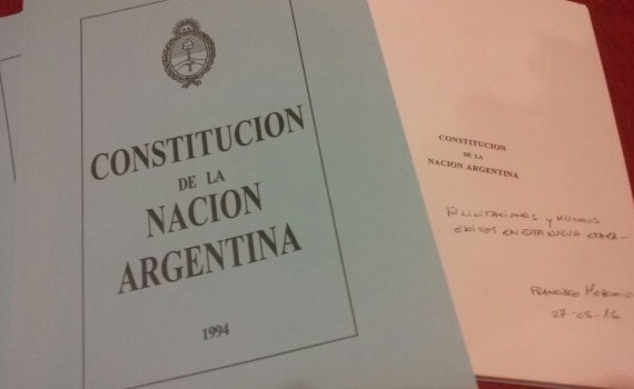 Quiero saludar a las promociones 2013, 2014 y 2015 de egresados del profesorado. Hoy se convierten en pieza clave para formar ciudadanos responsables para un mejor país. Felicito su esfuerzo y celebro su vocación. Les obsequio nuestra herramienta más importante como argentinos, nuestra Constitución Nacional.
